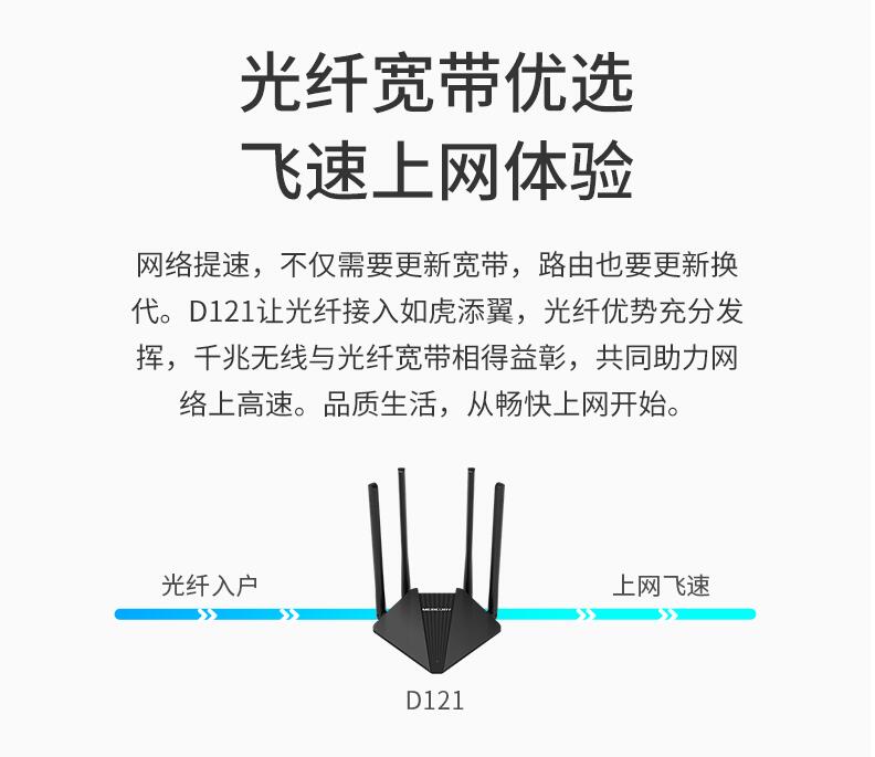 水星無(wú)線路由器家用高速wifi 5G雙頻千兆速率路由器穿墻王大功率增強(qiáng) 百兆端口宿舍學(xué)生寢室D121